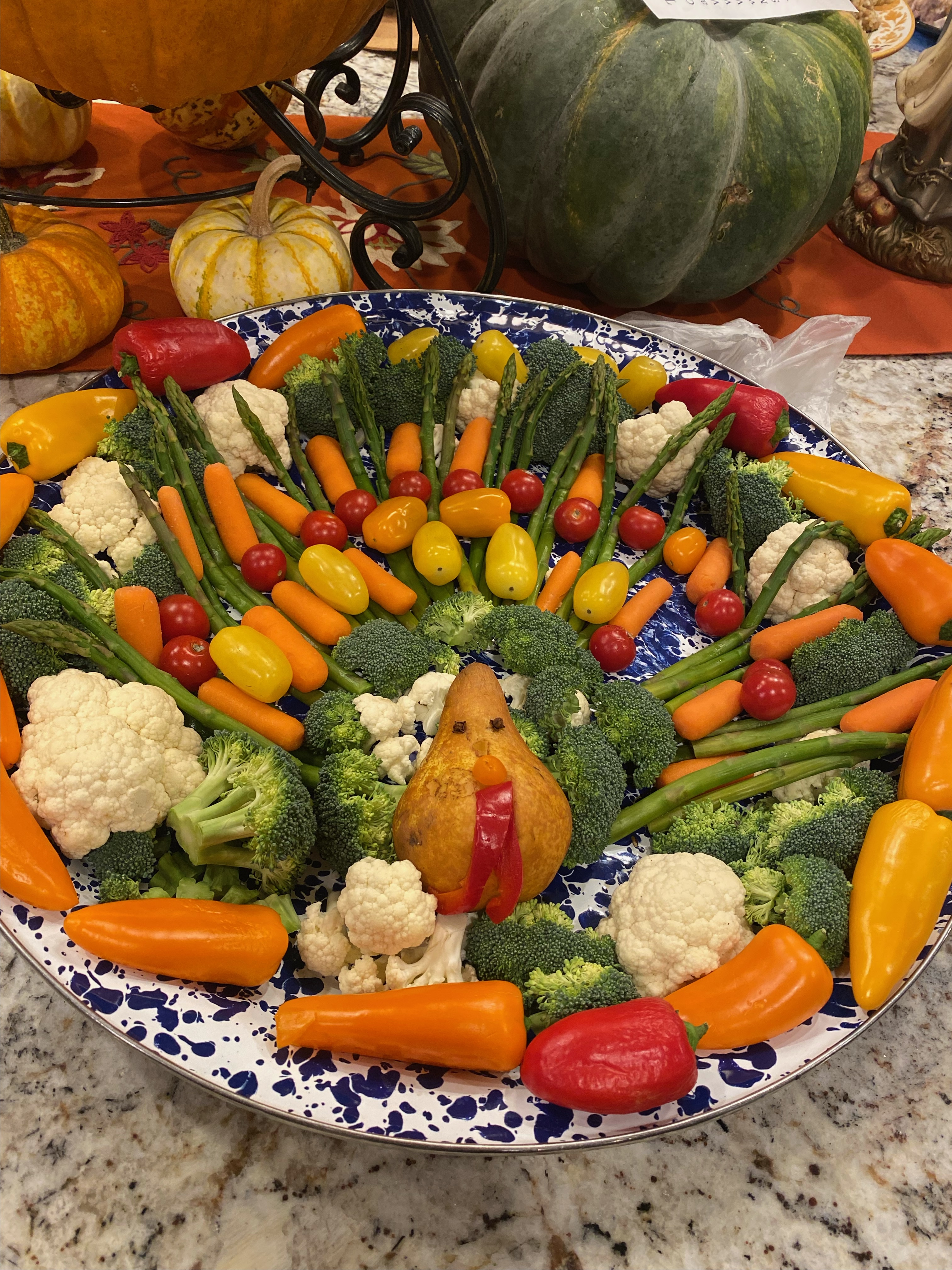 *A small pumpkin also works for the body and mozzarella, olives and cherry tomatoes for the feathers.