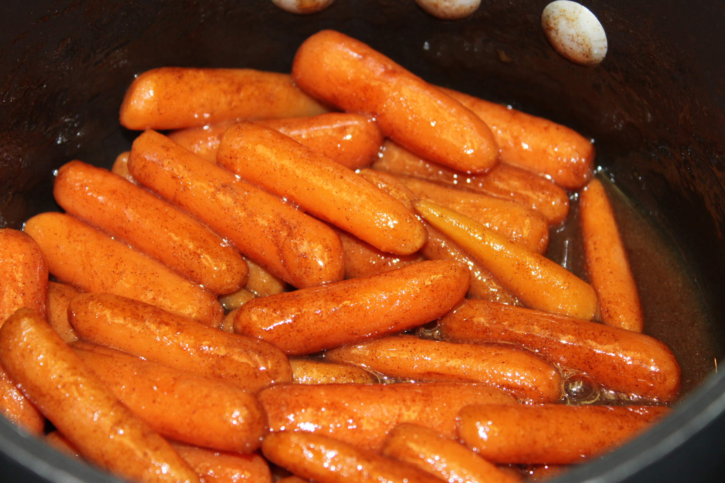 Add carrots and water to a sauce pan. Heat through. Add remaining ingredients and cook until syrup forms.