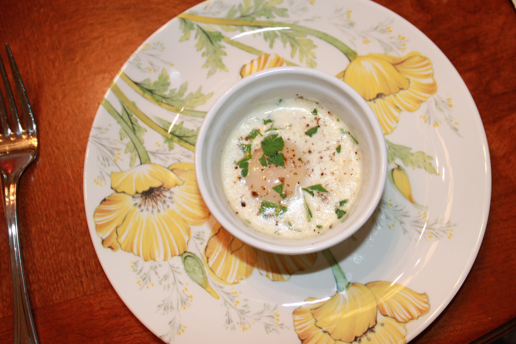 Serve with toasted French bread. (Eat these eggs in the ramekin–do not attempt to remove!)