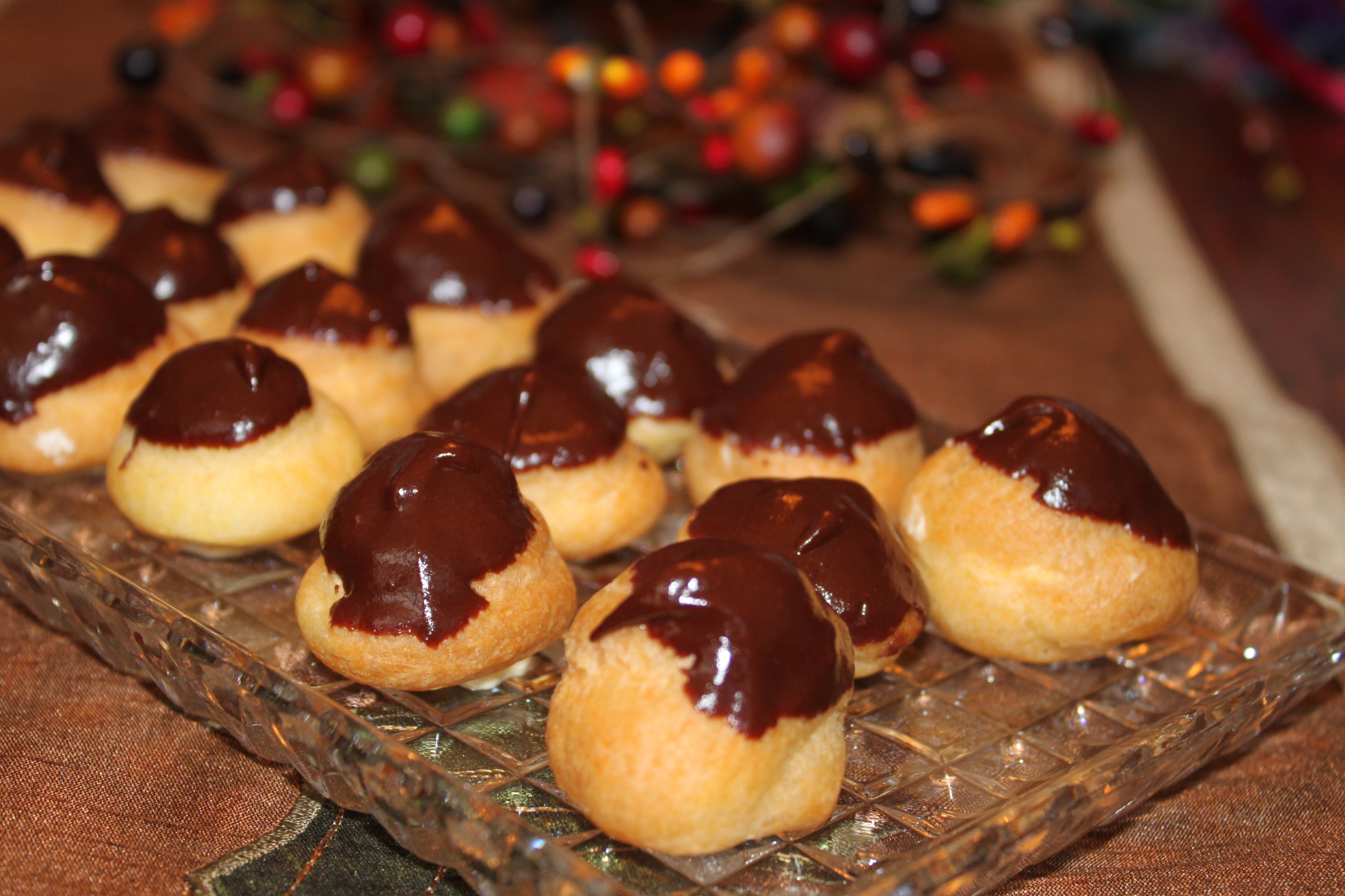 My children, especially Emily, love this. They asked for it for their birthdays. The pastry can be piped into small 1 teaspoon size balls or dropped by the spoon-full for larger puffs. Elizabeth made chocolate eclair bites for a book club meeting where the main character had been poisoned possibly by something in the chocolate eclair!