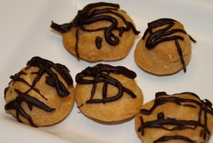 Glaze: Melt all ingredients together in microwave. Drizzle over puffs. Refrigerate. (You may want to put the chocolate in a ziploc bag and snip off the end to help drizzle the chocolate.)