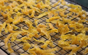 Peel the oranges by hand and scrape with a spoon to remove the membrane from the orange peel. As an alternative, use a vegetable peeler to create long strips of peel that will later be trimmed. A vegetable peeler will create thinner candies than the peel and scrape method.