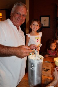 We made homemade ice cream every summer. PawPaw, Jerry Borel, milked his own cows. We skimmed the cream off the top and used it to make the ice cream. The cream was so thick, it hardly would pour. We didn’t have an electric ice cream maker. You had to turn the handle by hand. They would put a towel on top of the machine and one of the children would sit on top to help hold the machine still so the person turning it could have an easier time. Then when it got too hard to turn, it had to sit a while to harden. It seemed to take forever. That was the best ice cream I have ever tasted.