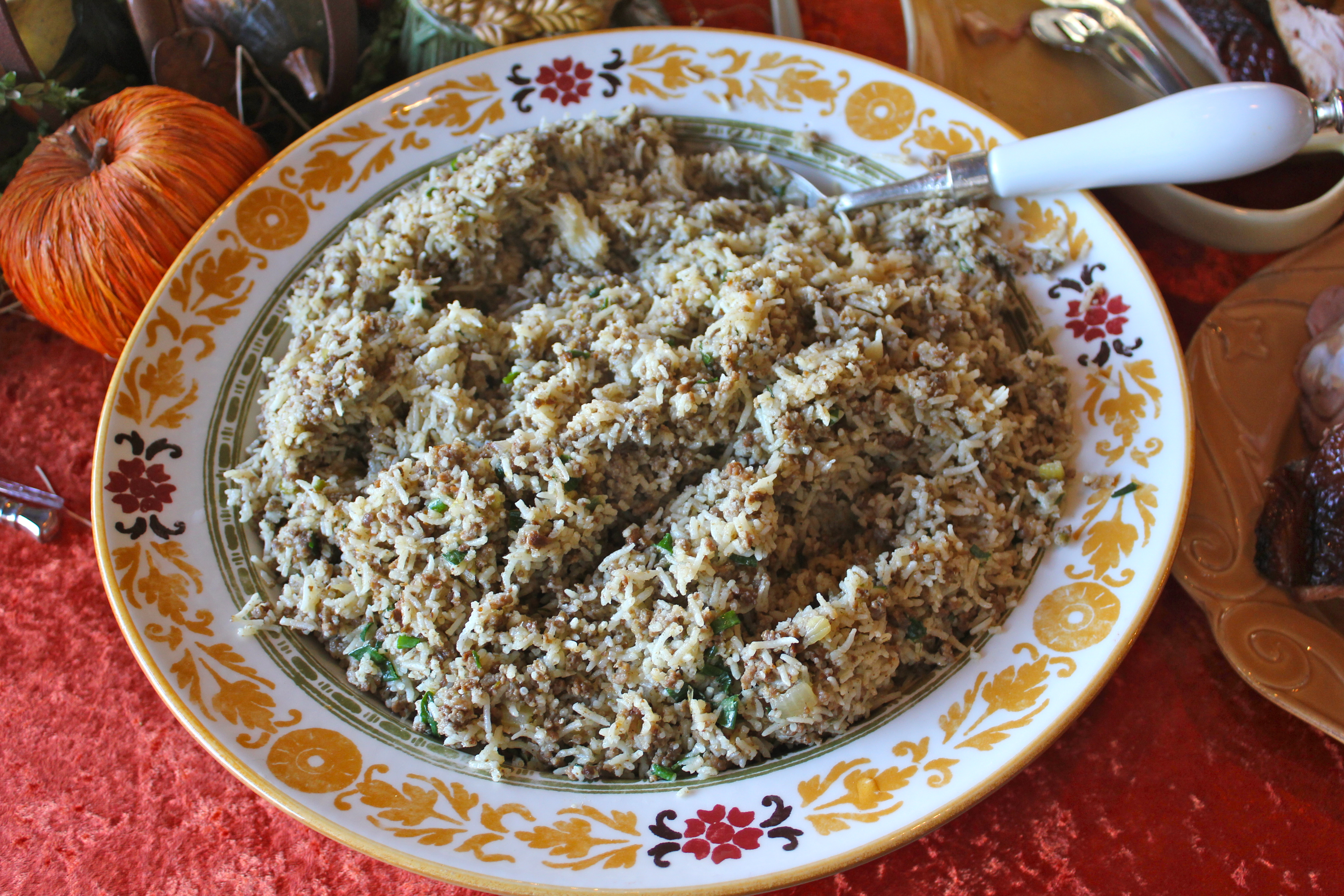 I am 58 years old and I don’t remember a Thanksgiving in my lifetime where my mother’s rice dressing wasn’t served. Besides the turkey, it’s the first item to be placed on the holiday menu. Grandchildren gather around the kitchen today inquiring when Granny will arrive with the rice dressing. She brings the pot in and places it on the stove to heat, then stirs in the rice and green onions. Let’s eat! I, personally, like it served with cranberry sauce.