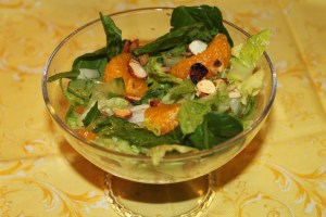 Combine and chill dressing. Combine salad, almonds, oranges and dressing just before serving.