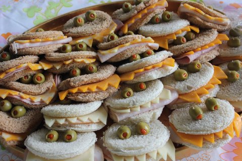 Cut out fish sandwiches filled with strawberry cream cheese.