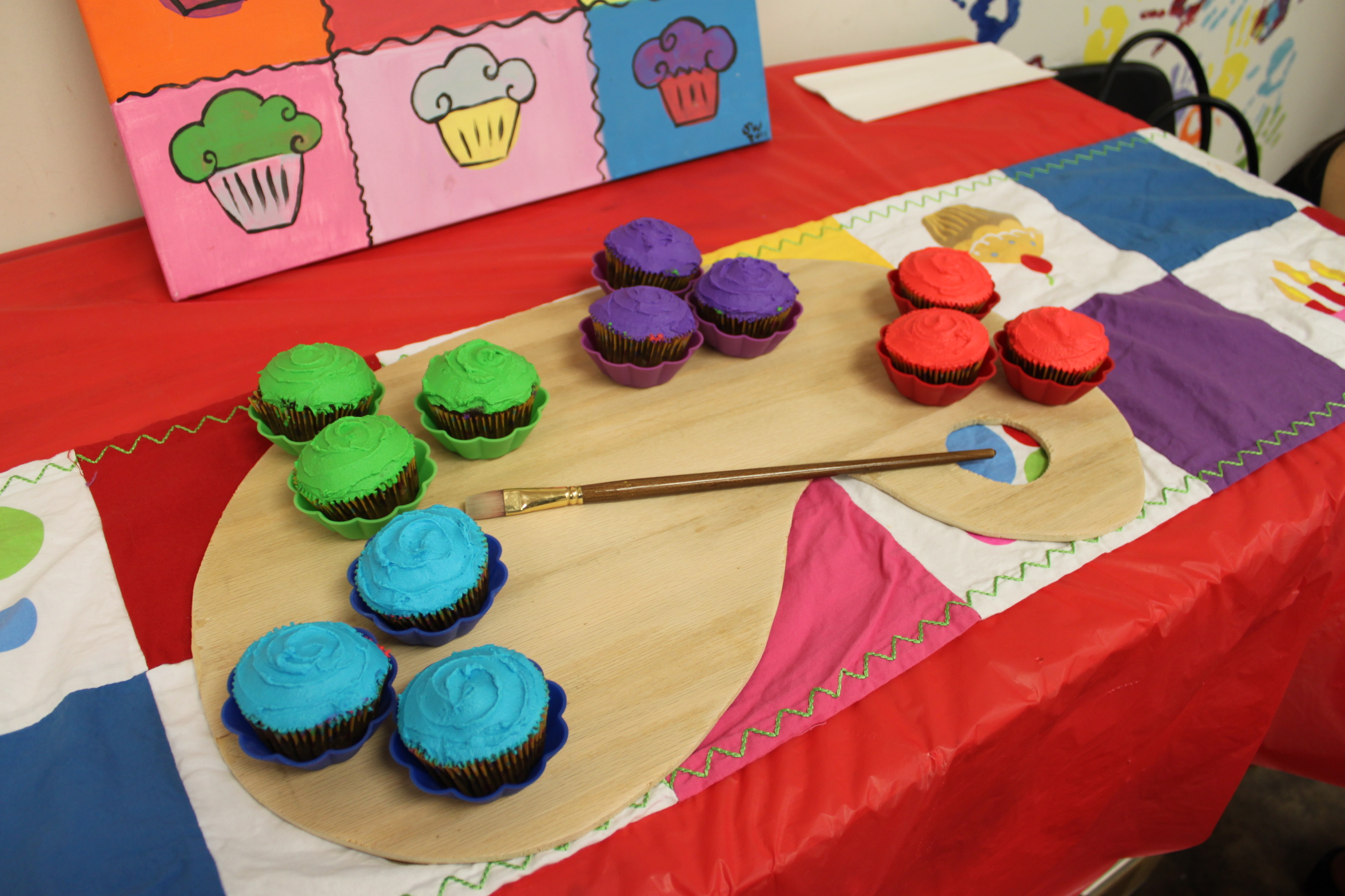One batch will ice one cake or 24 cupcakes.  Kayla breaks up the white icing into bowls and then colores them in the mixer separately. If you use the same bowl for another color, be sure wash completely first.