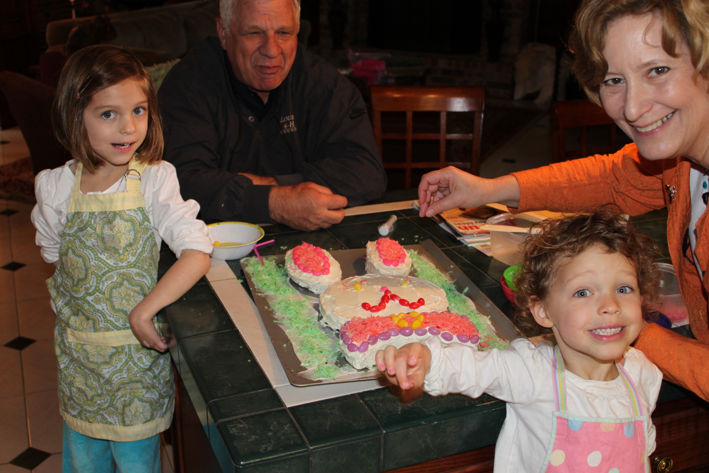 This is a fun and easy cake to make for Easter. Just bake two cake rounds. Use one round for the face, and cut the other into two ears and a bow tie. Have the kids decorate it with jelly beans and coconut.