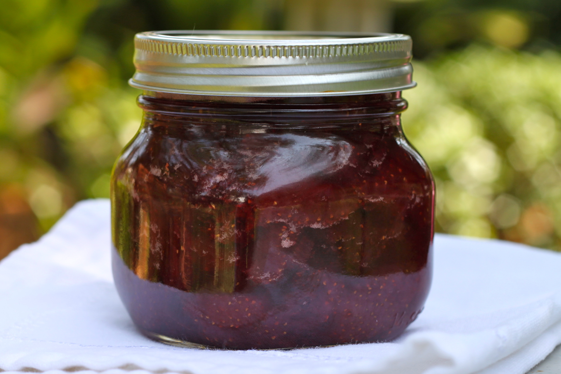 Be sure to leave 1/4 inch headspace between the jam and the top of the jar.  Wipe the rims clean, center lids, and screw on bands until finger tip tight.  Process jars in boiling water for 10 minutes, making sure water covers the jars at least an inch.  Turn off heat, and let jars rest in the water for 5 more minutes.  Remove and set aside for 24 hours.  Check lids for a good seal.  Store in a cool dark place for up to 1 year.