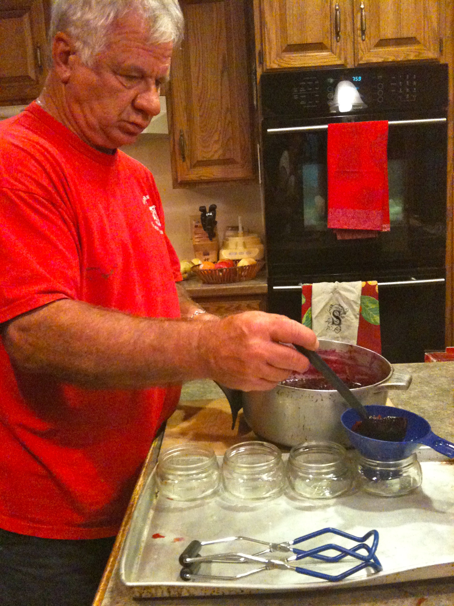 1.  Simmer jars and lids in boiling water until ready for use.  Set bands aside.