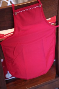 We put gingerbread men on the boy’s aprons and gingerbread women on the girl’s. If time allows, you can personalize the apron with the child’s name.