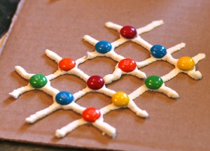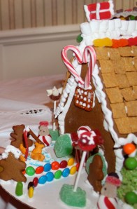 Set your table with a house for each child, a bag of icing, and a baggie of candy for decorations everyone will make together