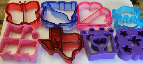 My girls love their “cute lunches” and insist that I make them most every day. It’s a way I can send an I love you message to them at school. While the traditional bento box usually includes rice, meat, fruit and vegetables, my version usually has a sandwich, protein, fruit and vegetables. I do send molded sushi rice on occasion, but sandwiches are just easier.  I have found the best selection of bento supplies at Fit, a Japanese dollar store in Bellaire, Texas near Beltway 8. However bento supplies can easily be found in grocery and craft stores if you know what to look for. My girls have learned to save cupcake toppers from birthday parties so I can reuse them in their lunch boxes!  Adding a little cuteness to your child’s lunch does not take long and is very appreciated.