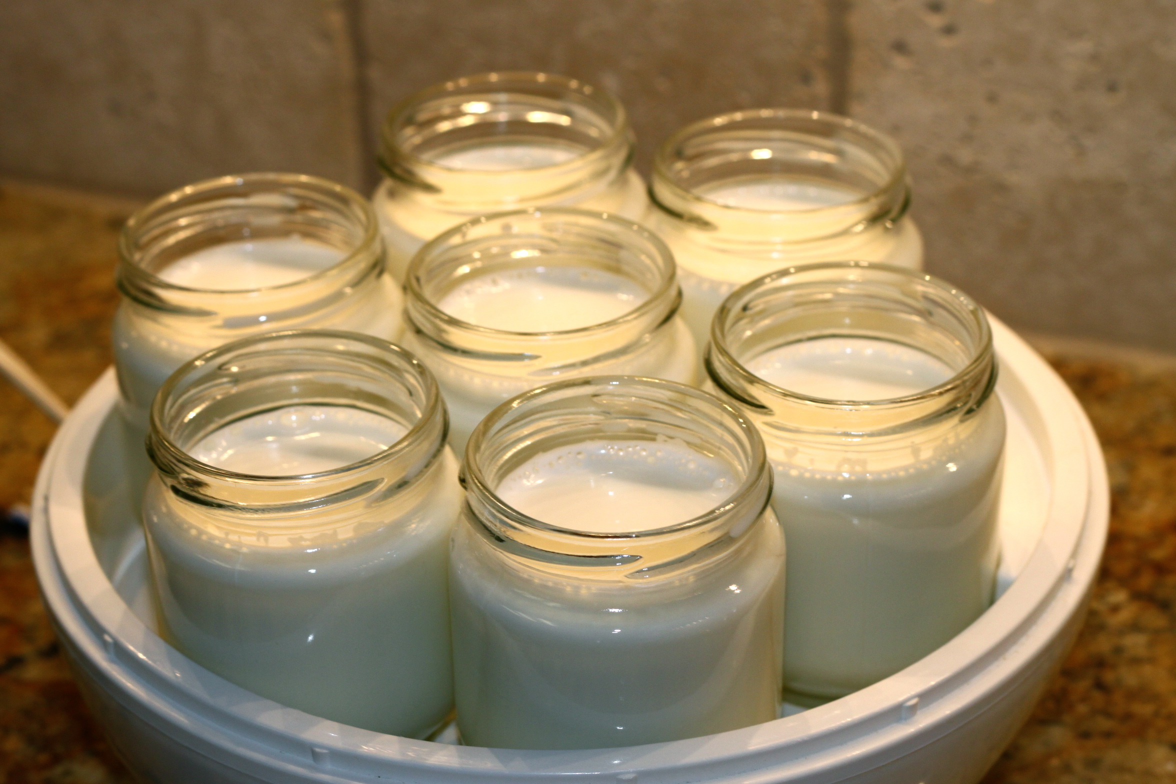Ladle into 7 jars. Do not put on lids yet. Place in yogurt machine for 8-10 hours.