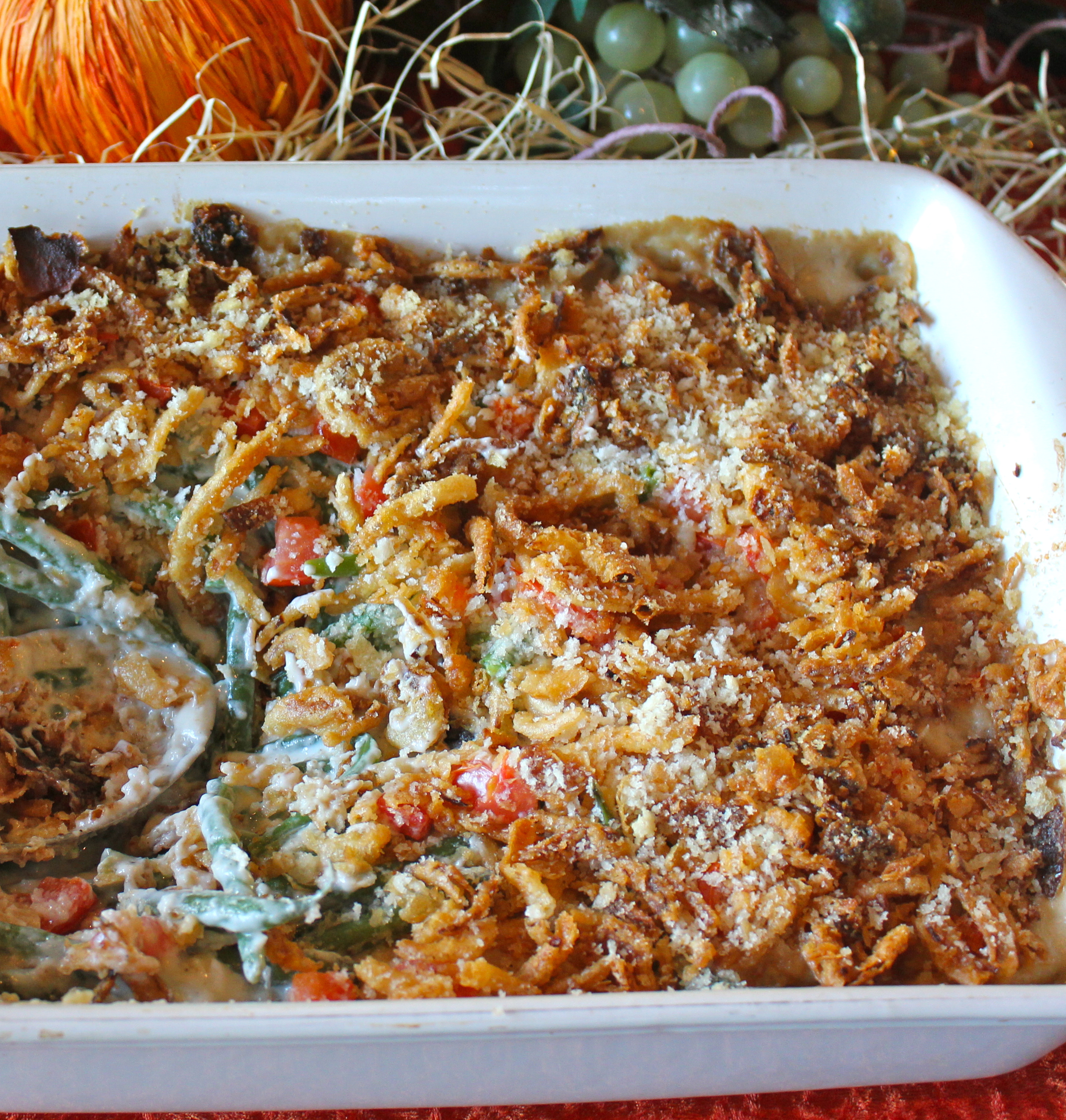 Someone always manages to bring the same old string bean casserole made with cream of mushroom soup for our holiday gatherings.  This year I thought I would beat them to the punch with this version.  There were praises all around for this delicious dish.